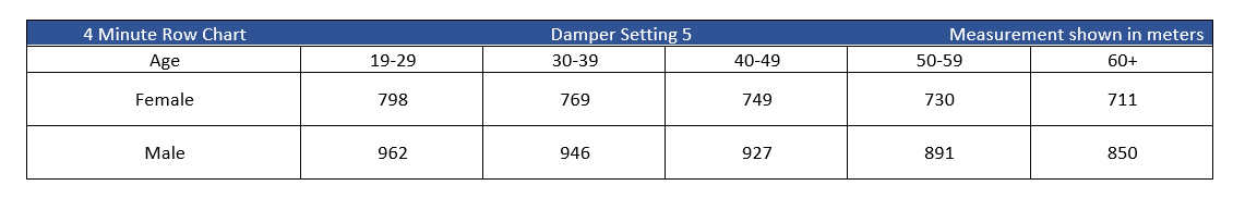 - Participant will successfully complete a standardized rowing test reaching the pre-determined distance listed on the Baytown Physical Agility Test Row Chart in 4 minutes or less with a damper setting of 5