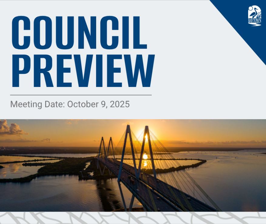 This summary is intended to inform the public of the main topics discussed and actions taken by the Baytown City Council during the October 9, 2025 meeting. For more detailed information, the full meeting transcript and official minutes are available at baytown.org/183 or upon request.
