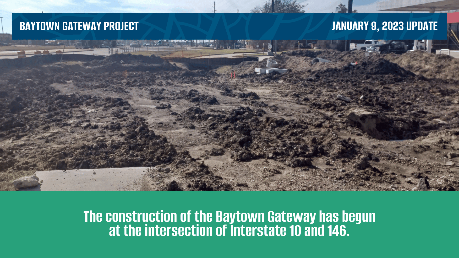 The construction of the Baytown Gateway has begun at the intersection of Interstate 10 and 146.