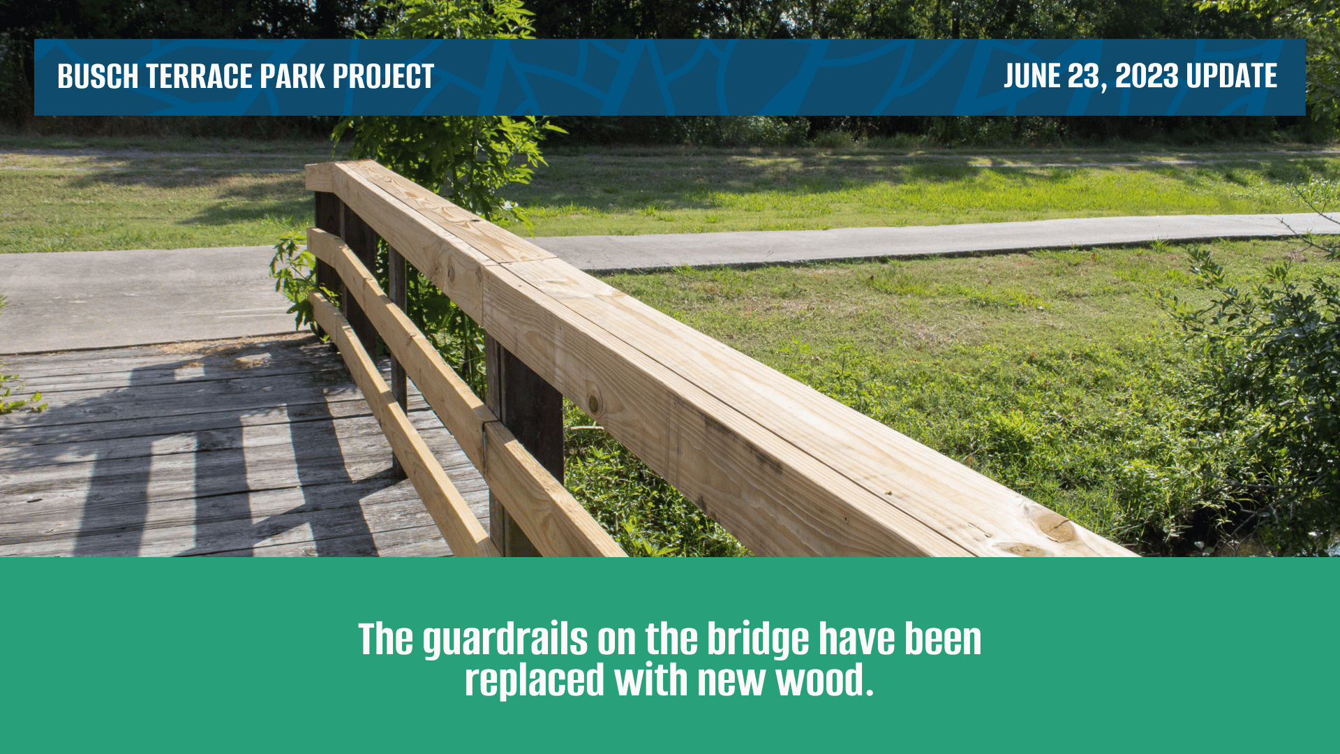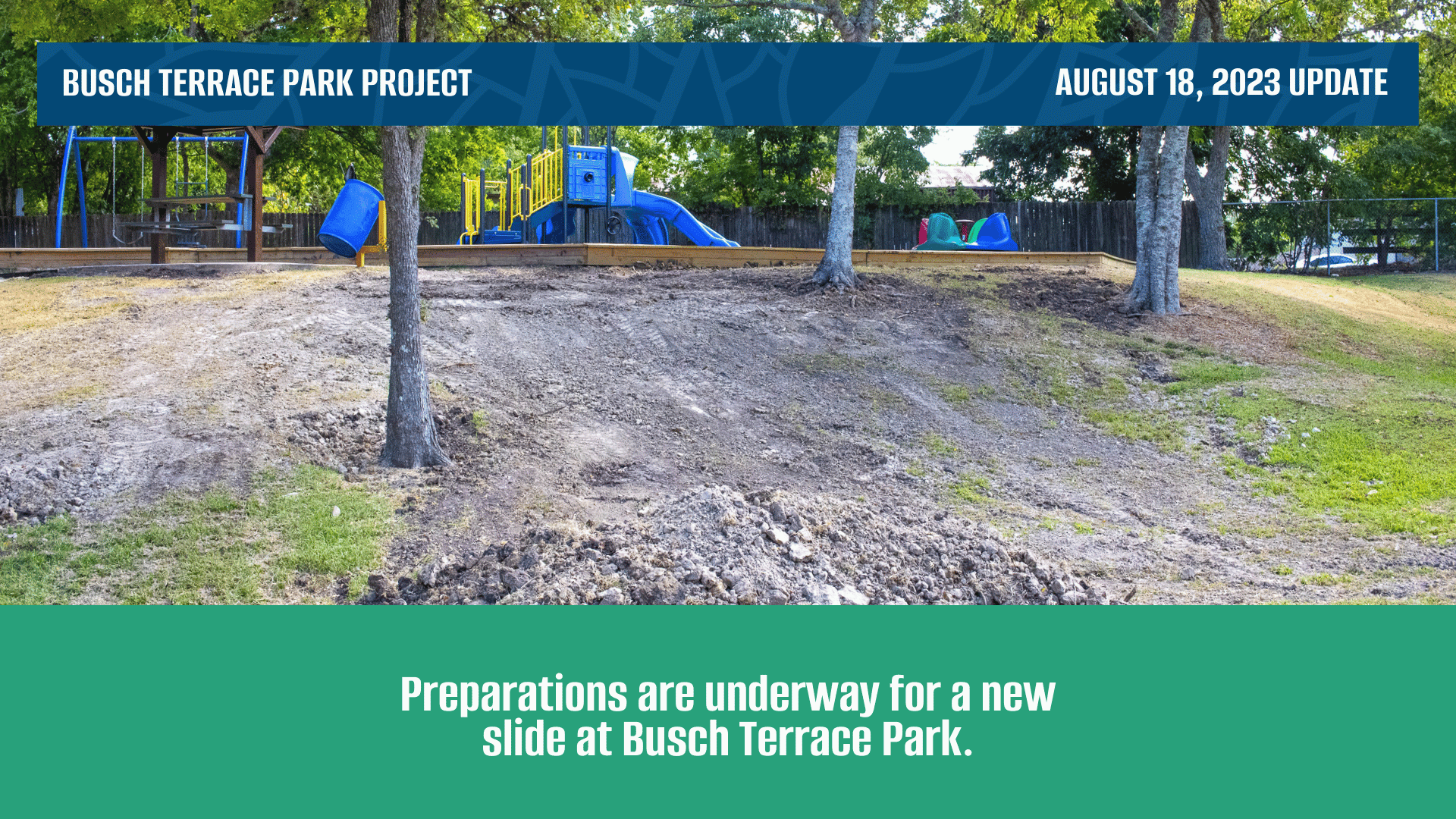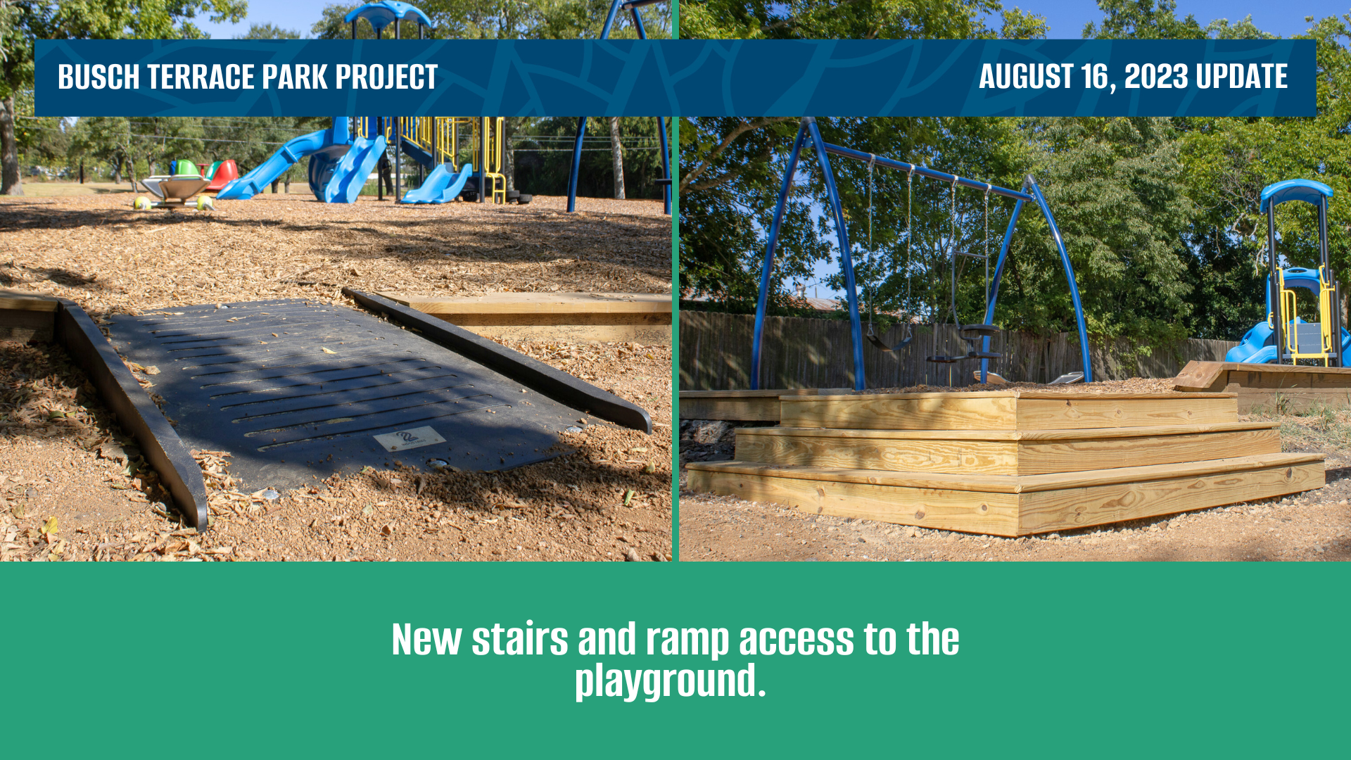 The playground at Busch Terrace is complete, a new slide will be installed in the next few weeks.